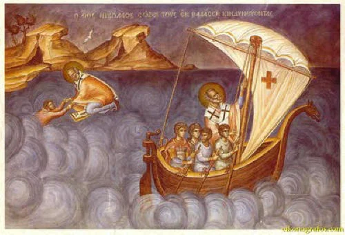 Светецът е и покровител на плаващите и патрон на всички моряци. Знае се историята по пътя за Божия гроб на Св. Николай, който тогава извършил чудеса - с молитва укротил разразилата се буря, възкресил един моряк, паднал от корабната мачта. Светителят помагал и на хора, които не познавал. Веднъж един кораб, плаващ от Египет за Ликия, бил застигнат от страхотна буря. Никакви човешки сили не можели да го спасят, но моряците горещо се молили на Св. Николай, - и ето, той се появил на палубата, влязъл в кабината, взел кормилото в свои ръце и управлявайки кораба благополучно стигнал ликийското пристанище.