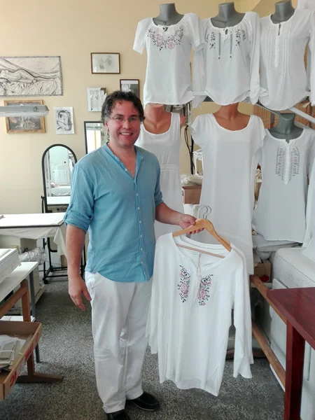 „Това беше най-трудният момент, даже изпаднахме в безизходица, бях на кръстопът и реших да произвеждам своя марка. В началото облеклата бяха малко по-различни, но пак сто процента от памук, който си доставяме от Казахстан, защото в България памук не расте. С течение на времето избистрих концепцията си и продължих да работя с кенар, защото освен подходящ за топлите сезони той всъщност е автентичен и много напомня за старите български облекла. Постепенно включих и шевицата, информация за която черпя от много фолклорни източници“, обяснява Валентин, чиито дрехи днес се продават преди всичко по туристически обекти с характерен фолклорен стил, каквито са „Етъра”, Боженци, Златоград, някои места по Черноморието.